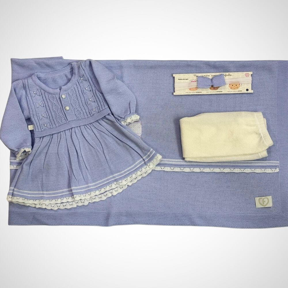 Esse lindo conjunto de 4 peças foi criado com muito carinho para acolher sua bebê com conforto e elegância. Composto por um vestido charmoso, uma meia-calça macia, uma tiara delicada e uma manta super aconchegante, é perfeito para tornar esse momento tão especial ainda mais inesquecível.