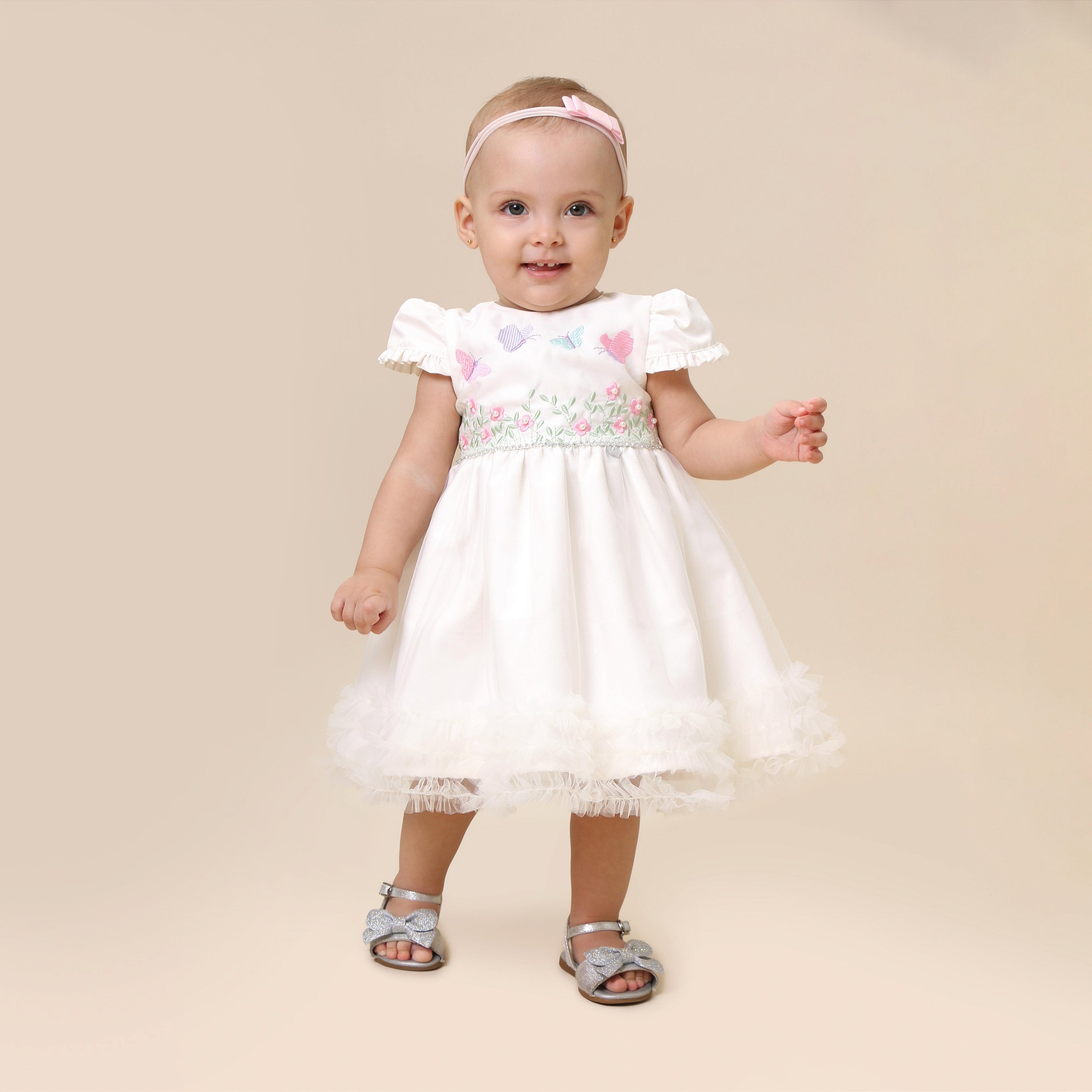 O Vestido Luxo Bebê com borboletas coloridas da marca Cattai é a escolha perfeita para ocasiões especiais. Confeccionado em tecido de alta qualidade, este vestido combina conforto e elegância, ideal para festas, casamentos, batizados e aniversários. Seu design distintivo apresenta detalhes bordados coloridos e pérolas, proporcionando um toque sofisticado e encantador para sua pequena.